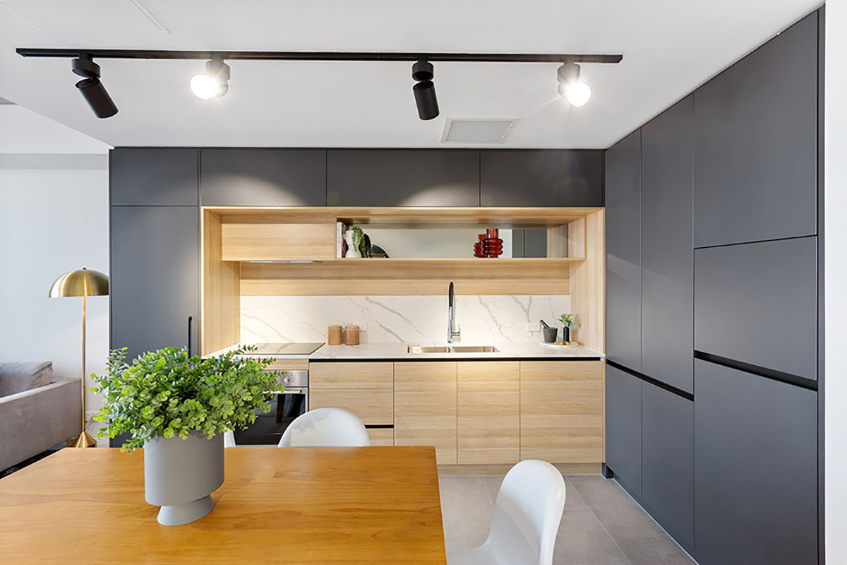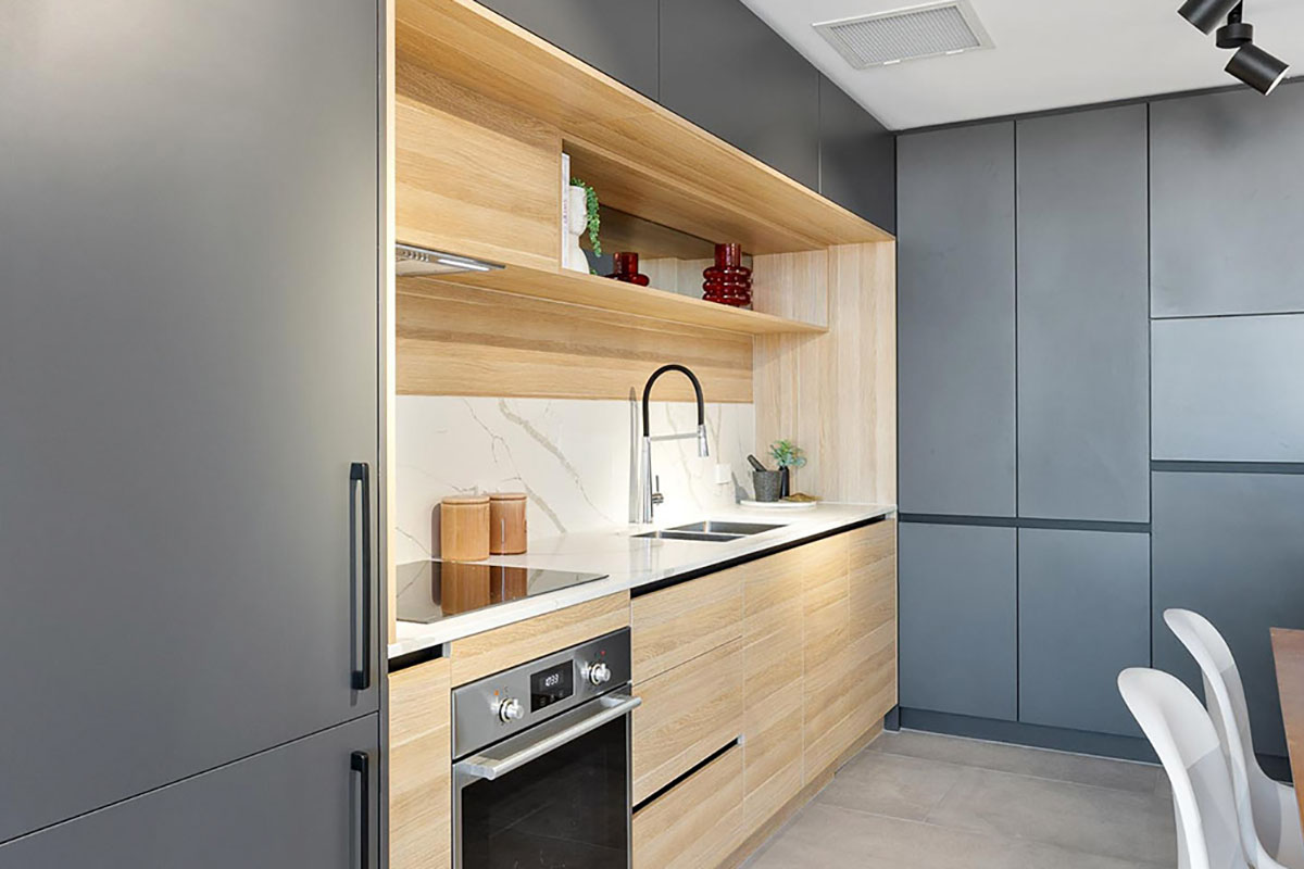 Kitchen Cabinet Kitchen @ Quality Lacquered Paint Satin Battalion Grey Borg Manufacturing Polytec Melamine Natural Oak Ravine