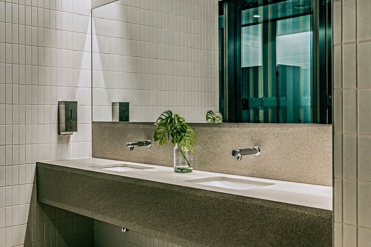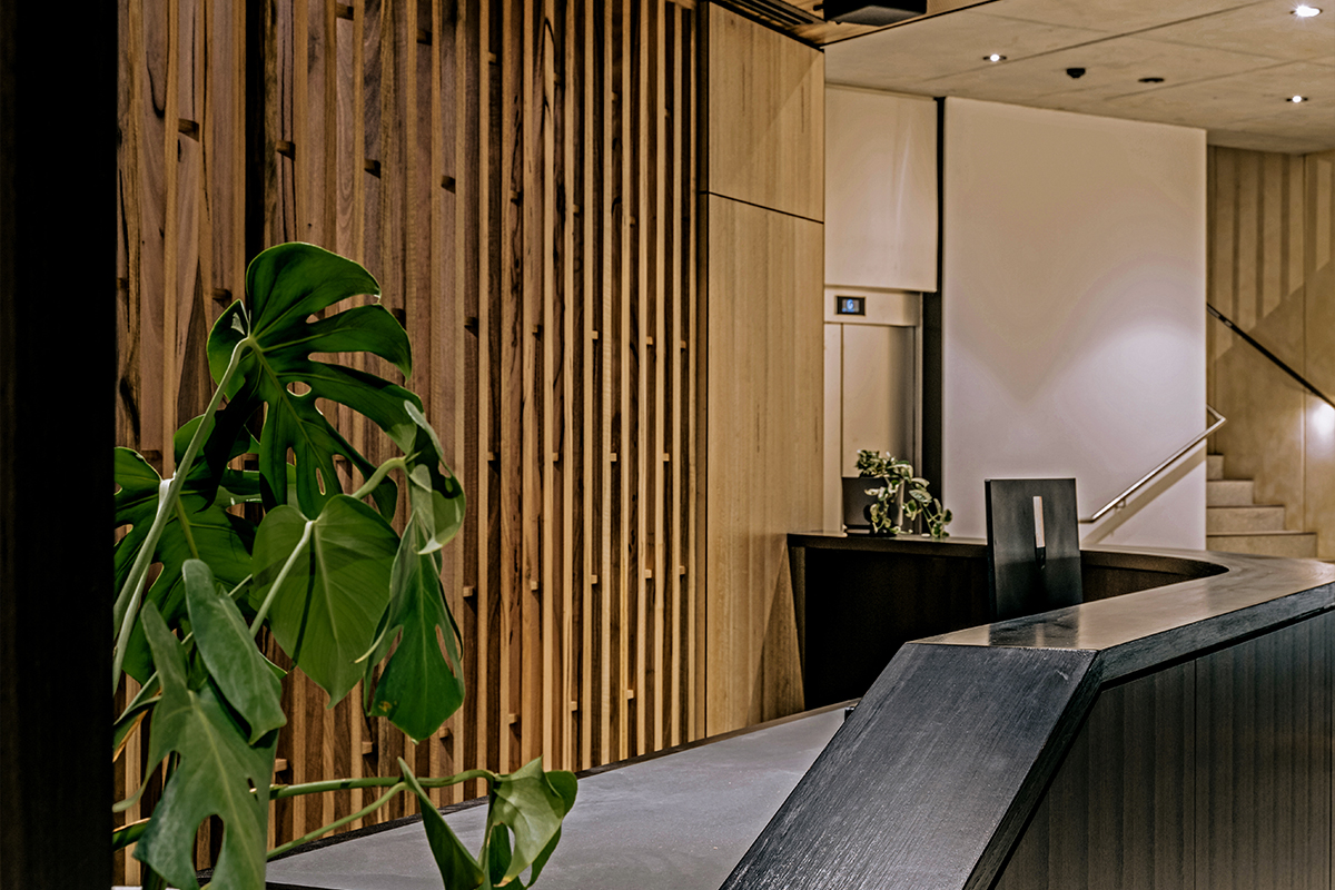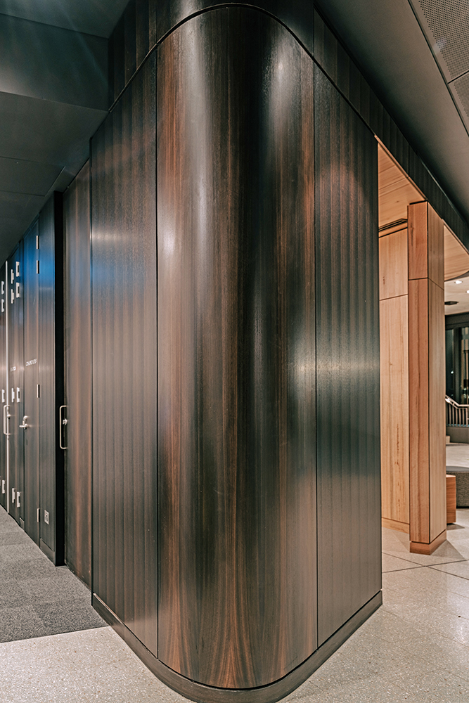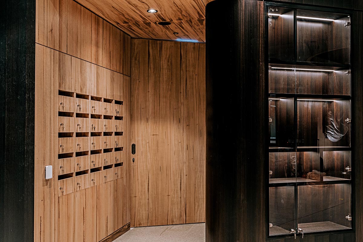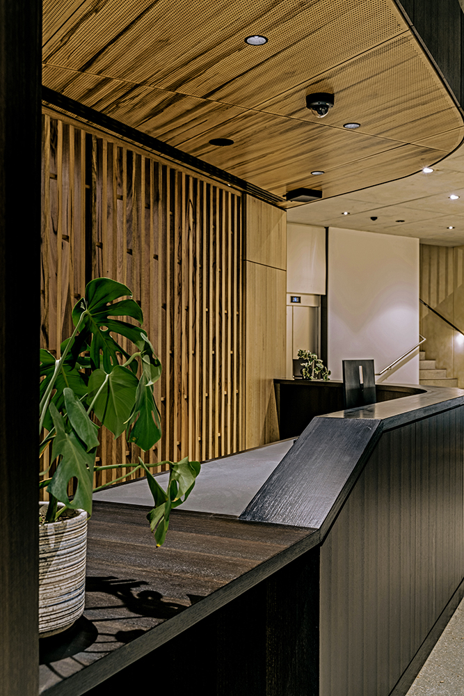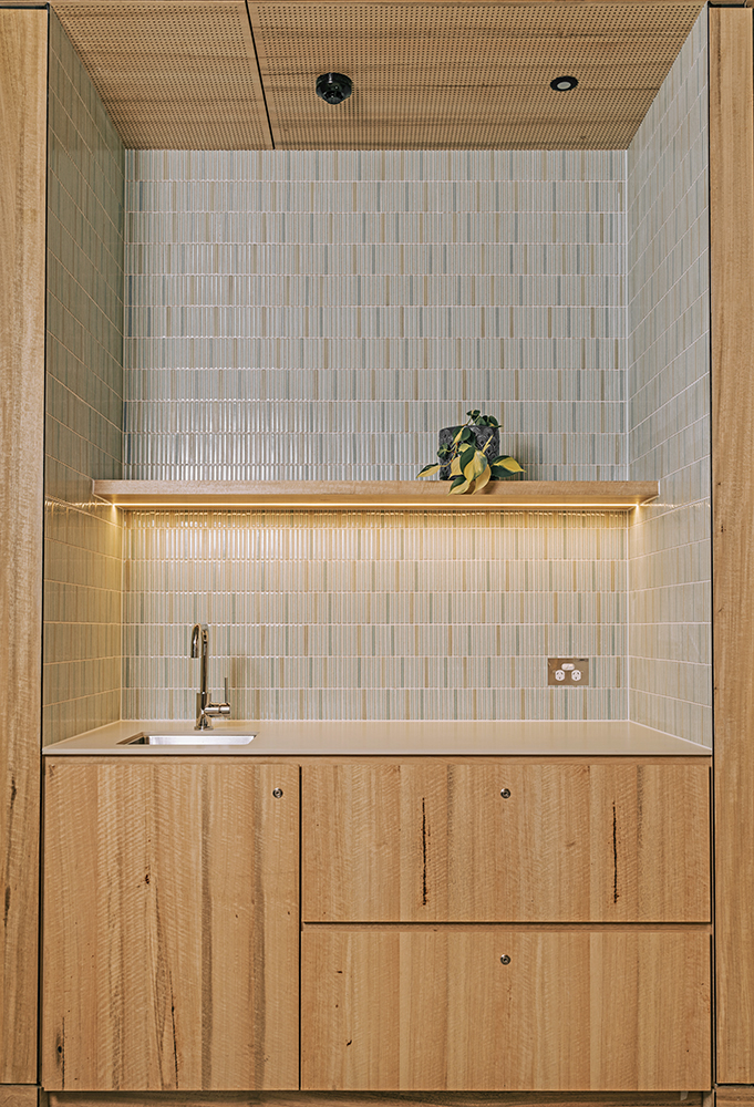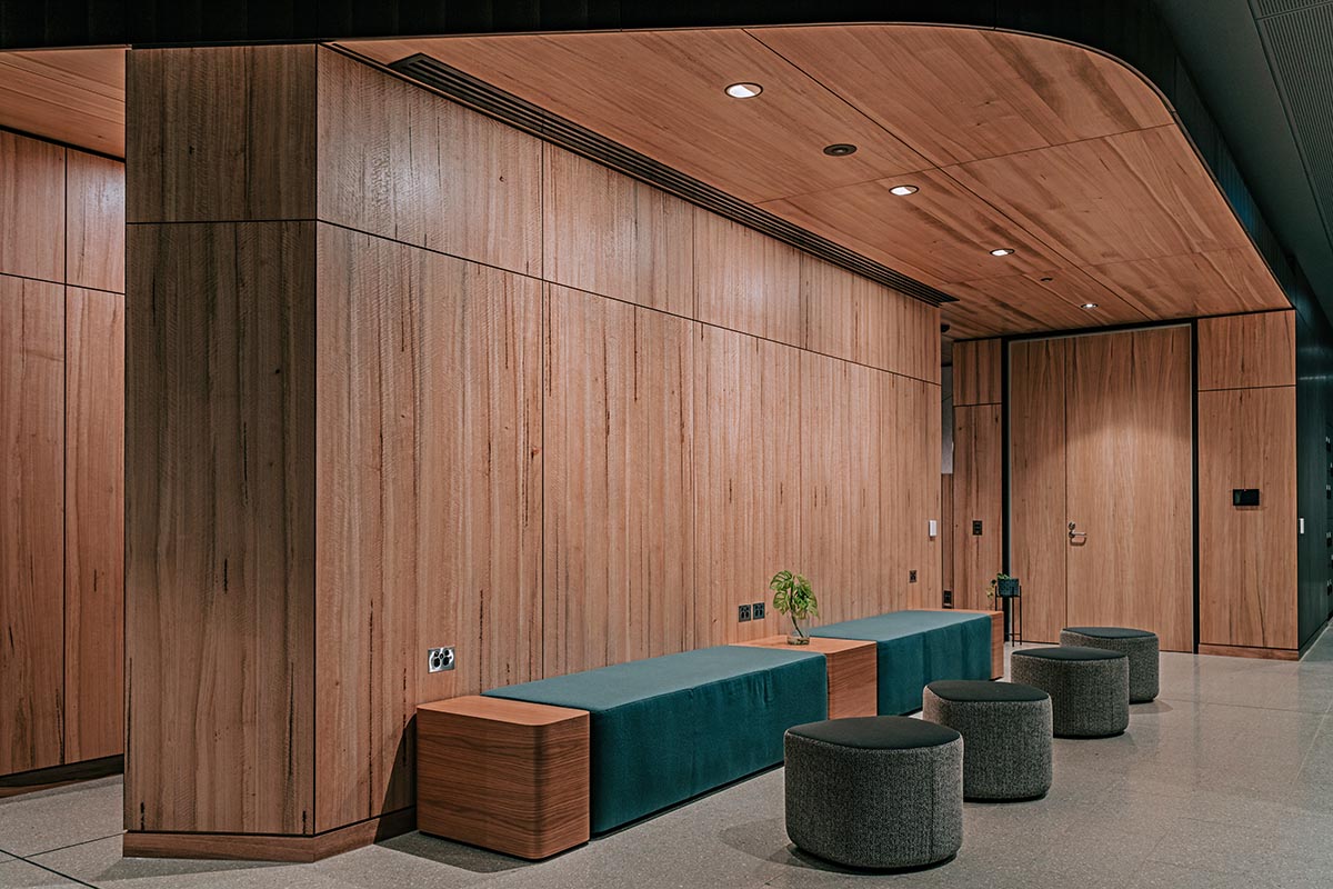 The new Indigenous Studies building provides an exciting learning environment for students in the School of Indigenous Studies and at the Centre for Aboriginal Medical and Dental Health. The building includes informal learning spaces, collaborative learning and spill-out spaces, and a variety of research and postgraduate office spaces. Kitchen @ Quality was contracted to provide and install all the cabinetry and benchtop work, including bespoke natural timber veneer cabinet door, timber veneer wall, terrazzo tiling and benchtop.